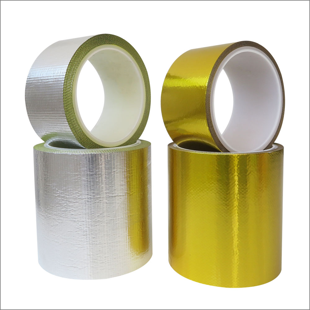 铝箔复玻纤胶带用17u铝箔和50u玻纤作为基材,涂以亚克力胶水带瓦楞离型纸。